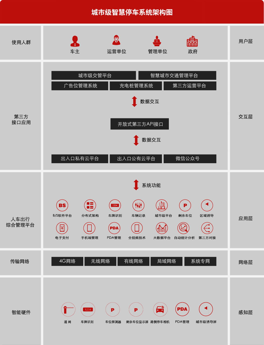 某某科技城市级停车管理平台是一套全视频的智能管理系统,将路内、场内两种城市停车功能区划分开,利用场内停车场道闸系统、场内停车引导系统、路内停车系统、路测停车诱导系统、场内区域引导系统的多系统有机串联,结合车牌识别技术、人工智能技术、移动互联通讯技术。从而将城市中人们的停车找车缴费等全流程应用落地,通过一套后台平台管理软件,一个手机公众号应用平台来提供城市停车的自动识别、数据存储以及后台管理的一套综合解决方案。